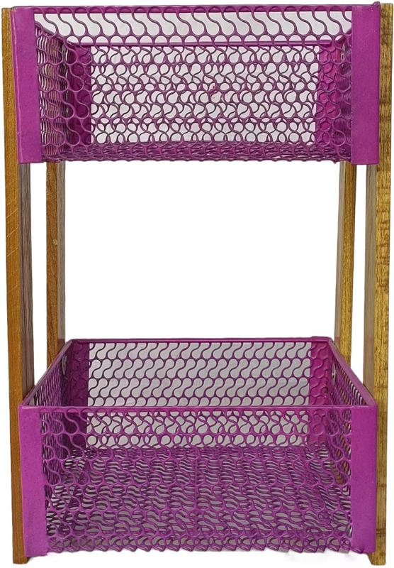 Wisekrafter’s Pure Teakwood And Metal 2 Tier Stand Kitchen Basket | For Fruits Onion Potato Rack For Kitchen | Vegetable Stand For Kitchen | Handcrafted Rack For Sabji Storage Kr028