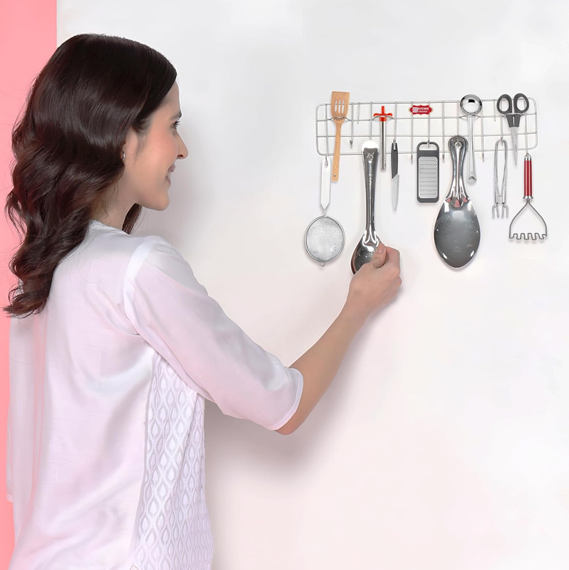 Kitchen Expert – Steel Cutlery Holder for kitchen – 11 Hooks and 4 Top Single Compartments