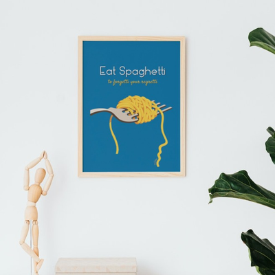 “Eat Spaghetti” Pinewood Kitchen Wall Art Illustration