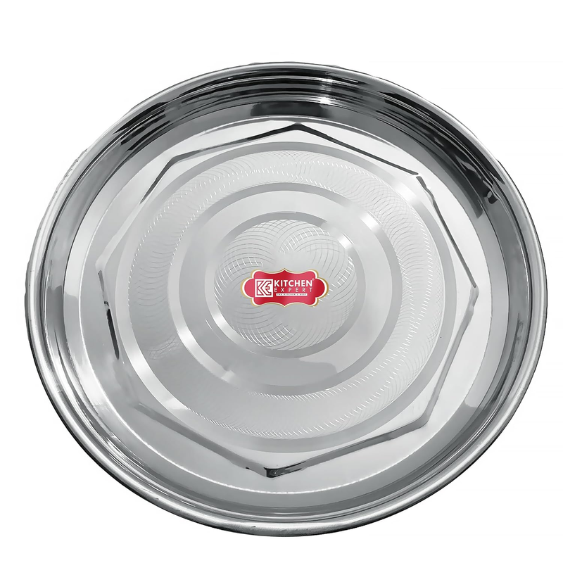 Kitchen Expert® Stainless Steel Dinner Plate| Bhojan Thali for Serving | Steel Thali for Kitchen | Set of 2