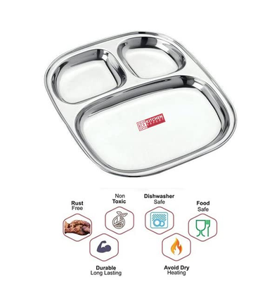Product Dimension – 8 x 10 x 1 Inch & Weight – 340 GramType: Sectioned PlateMaterial: Stainless Steel