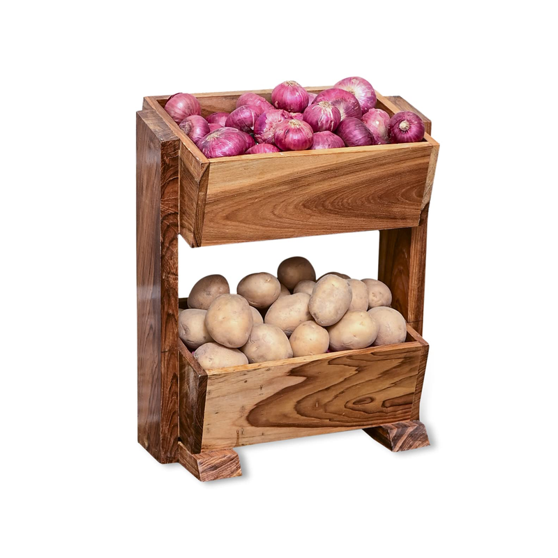 The finish of Teak wood is natural and it easily fits with any type of home interior. This can be used in your Kitchen as Multipurpose Kitchen storage rack, Fruits Rack stand, Fruits and Vegetable stand, Onion Potato Garlic Stand rack.