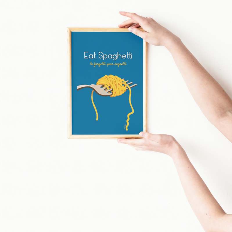 “Eat Spaghetti” Pinewood Kitchen Wall Art Illustration
